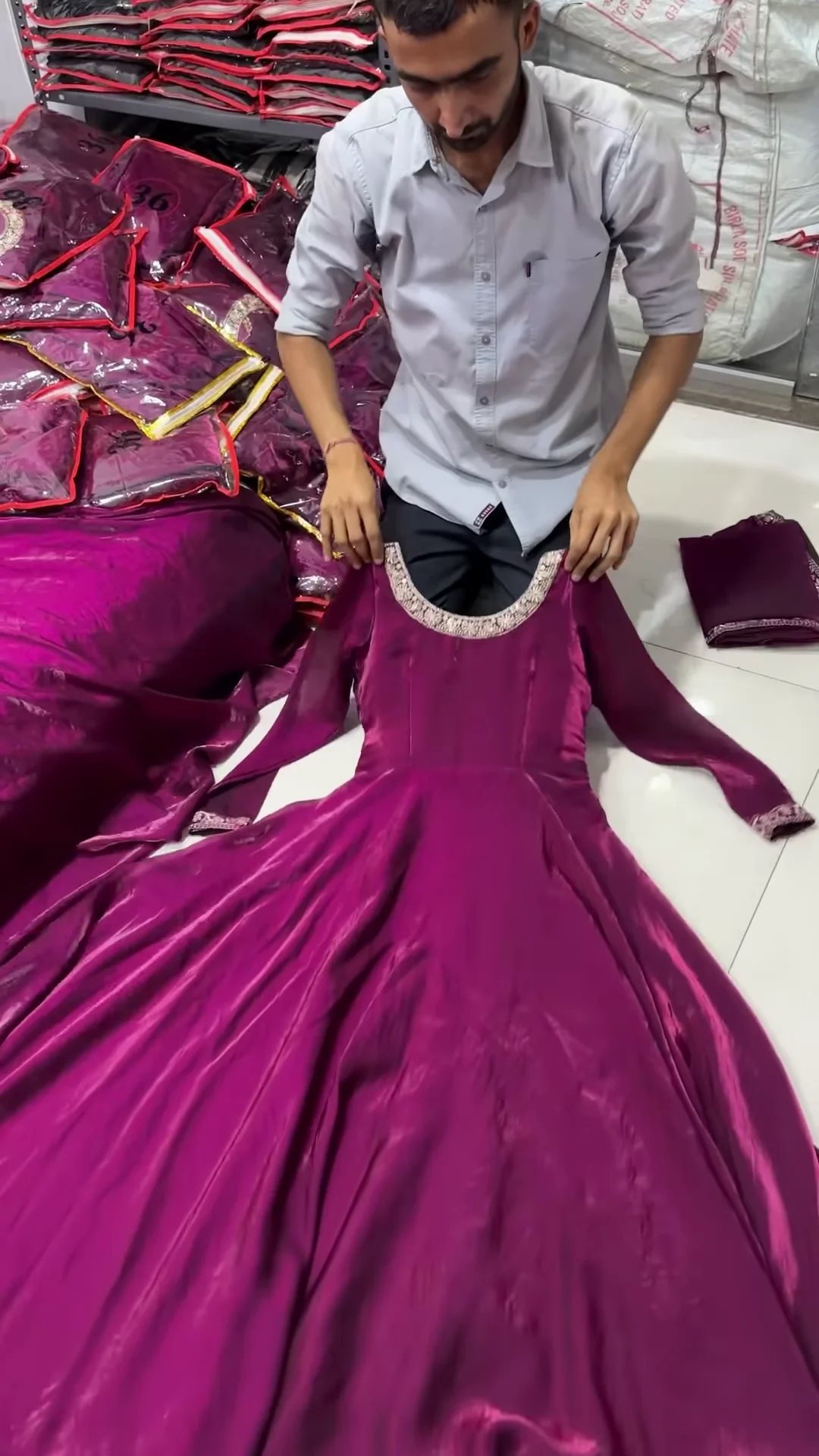 Complete your festive or wedding look by pairing this gown with statement earrings, a clutch, and embellished heels. The rich wine shade ensures you stand out in the crowd while radiating effortless charm.